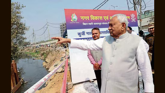 मुख्यमंत्री नीतीश कुमार ने शनिवार को शहर में चल रही दो प्रमुख जल निकासी परियोजनाओं - आशियाना-दीघा सड़क के किनारे स्थित कुर्जी नाला (जिसे राजीव नगर नाला के नाम से भी जाना जाता है) और आनंदपुरी नाला - के निर्माण कार्यों का निरीक्षण किया और अधिकारियों को जलभराव की गंभीर समस्या को हल करने और आसपास के इलाकों में यातायात प्रवाह को बेहतर बनाने के लिए कार्यों को शीघ्र पूरा करने का निर्देश दिया।