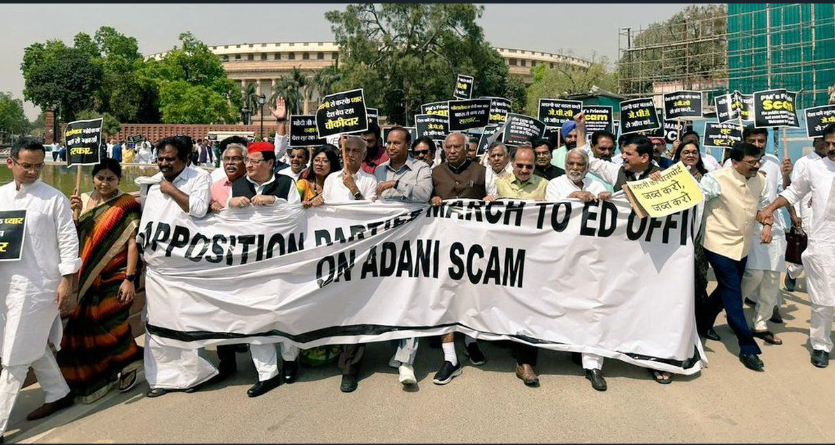 अडानी समूह पर आयी संकट अब देश की राजनीती का भी हिस्सा बन गया है। विपक्ष केंद्र सरकार को लगातार अदाणी से जुड़े मु्द्दों को संसद में उठा रही है।और इसी मुद्दे पर दिल्ली में विपक्ष ने संसद से ईडी कार्यालय तक मार्च शुरू कर दिया है। अदाणी मुद्दे पर ज्ञापन सौंपने के लिए विपक्षी सांसदों ने ये मार्च की शुरआत की है जिनमे अभी तक एनसीपी और टीएमसी की तरफ से कोई भागीदारी नहीं देखि गयी है।