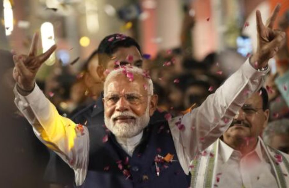 मोदी ने मंगलवार को अपनी पार्टी के मुख्यालय में भीड़ को संबोधित करते हुए कहा, “आज की जीत दुनिया के सबसे बड़े लोकतंत्र की जीत है,” और भारतीय मतदाताओं ने उनकी पार्टी और उनके राष्ट्रीय जनतांत्रिक गठबंधन (एनडीए) में “असीम विश्वास” दिखाया है।